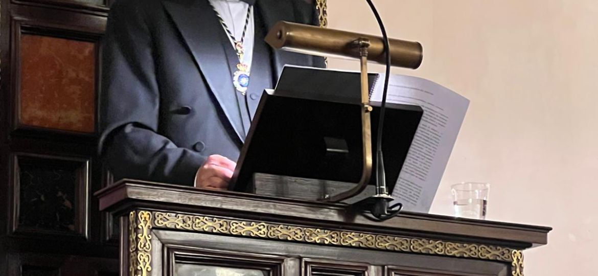 Muchas gracias también por su asistencia a los Sres. Académicos y a todos los presentes por acompañarnos en esta apertura de curso 2025 -2026. Algunos entre ustedes quizá es la primera vez que asisten a un acto de la Academia, me gustaría que no se dejaran impresionar en exceso por lo severo de nuestro protocolo y sepan ver en él sencillamente el respeto a la tradición, el rito que nos recuerda de vez en cuando y convenientemente la responsabilidad y el deber que nos ocupa al formar parte de esta Institución, que pronto celebrará su 250 aniversario y a la que han pertenecido históricamente muy ilustres personajes.