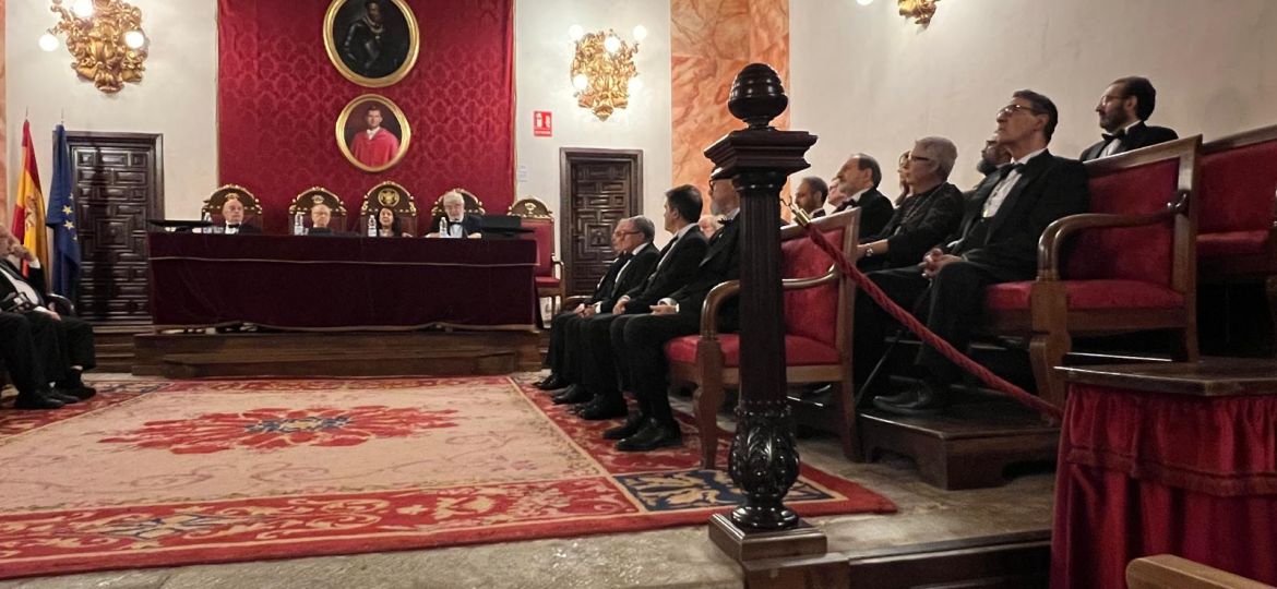 El jueves 9 de Octubre de 2025 a las 19h30, en el Paraninfo de la Facultad de Derecho, tuvo lugar el acto público y solemne de Apertura del Curso Académico 2025-2026. Preside la mesa, junto a la Sra. Directora, el Presidente del Instituto de Academias de Andalucía, D. Benito Valdés Catrillón.