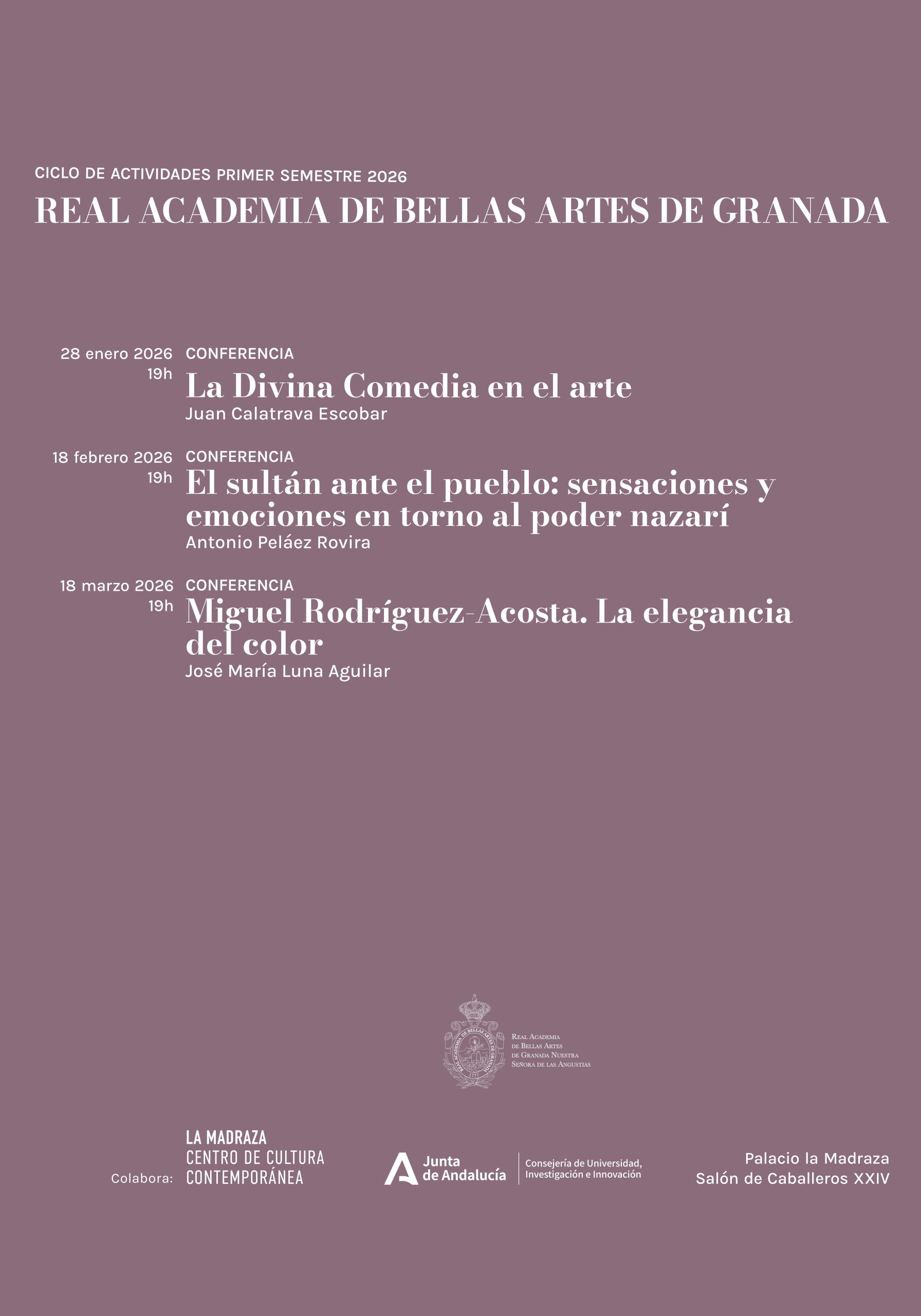 Este curso 2025 – 2026 la Real Academia organiza, en colaboración con La Madraza, Universidad de Granada, el segundo ciclo de conferencias.